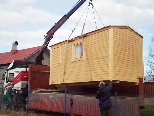 Модули шириной 2.4 метра (длина до 7 метров) доставляются камаз-манипулятором,