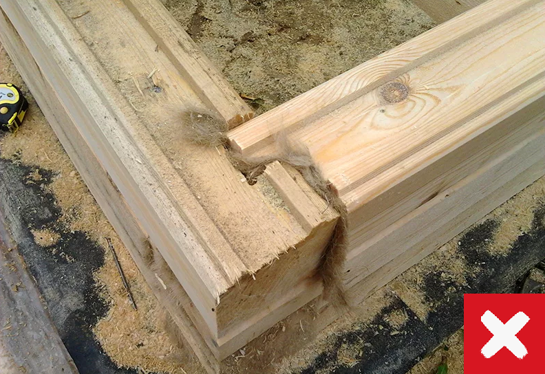 - Выступающие концы бруса работают как «замки», препятствуя горизонтальному смещению элементов.